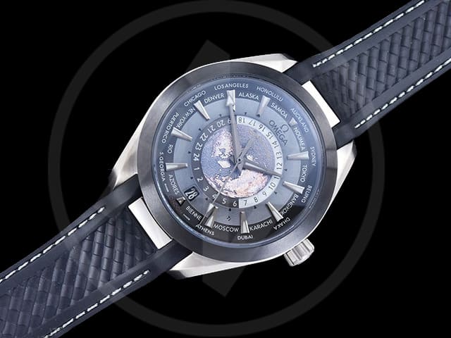 43mm Rubber Strap Aqua Terra GMT Worldtimer 2836 Black Dial Steel OMG-25053