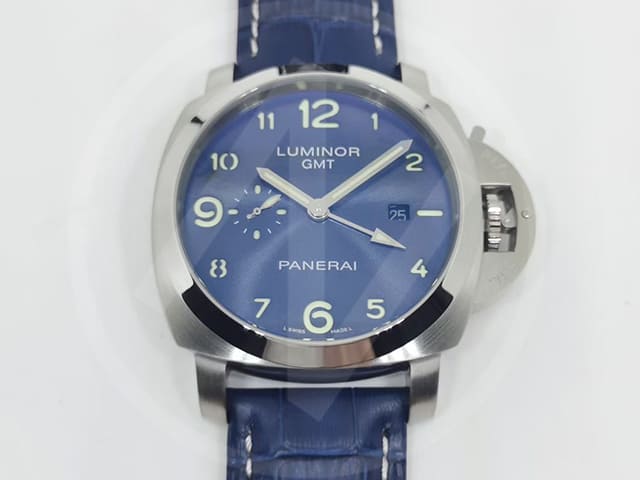 44mm Leather Strap Luminor 3 Days GMT PAM 437 Automatic Blue PA388