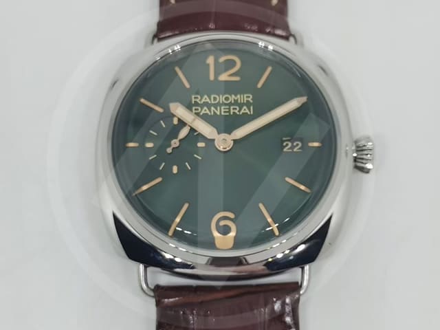 45mm Leather Strap Radiomir Quaranta PAM 1386 Automatic Green Dial PA385