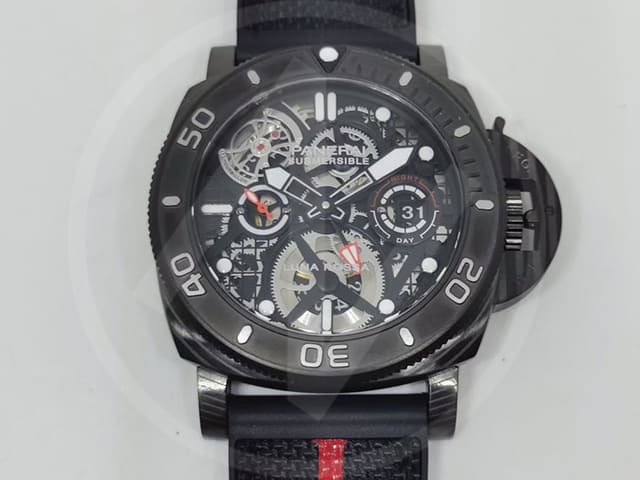 Carbon 47mm Nylon Strap Submersible Tourbillon GMT Luna Rossa PAM 1405 Automatic Black Dial PA384